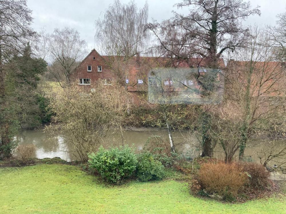 Im Erdgeschoss des Hauses befindet sich der großzügige Wohnbereich mit Blick auf die Terrasse und die Else. Als Besonderheit ist das Artrium als Blickfang herauszuheben. Außerdem befindet sich im Erdgeschoss die Küche mit EBK sowie ein Gäste WC. Im Obergeschoss befinden sich die Schlaf und Kinderzimmer sowie das Badezimmer. Eine Besichtigung der Wohnung ist nach vorheriger Absprache möglich. Die Kosten für Wasser und Strom sind vom Mieter direkt mit den Versorgungsunternehmen abzurechnen. Zur Wohnung gehört auch ein Garagenstellplatz.